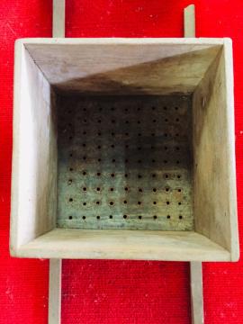 เครื่องบีบลอดช่อง วัสดุรูปสี่เหลี่ยม มีไม้เป็นขาเพื่อวางไว้ ปากหม้อ เมื่อน้ำเดือดจึงตักแป้งที่เหลวใส่ในเครื่องบีบแล้วใช้ไม้ฝากดลงไปที่แป้ง แป้งก็จะไหลลอดช่องลงไป เป็นตัวลอดช่องลงในน้ำเดือด ทิ้งไว้สักพัก แล้วตักขึ้นแช่ในน้ำเย็น