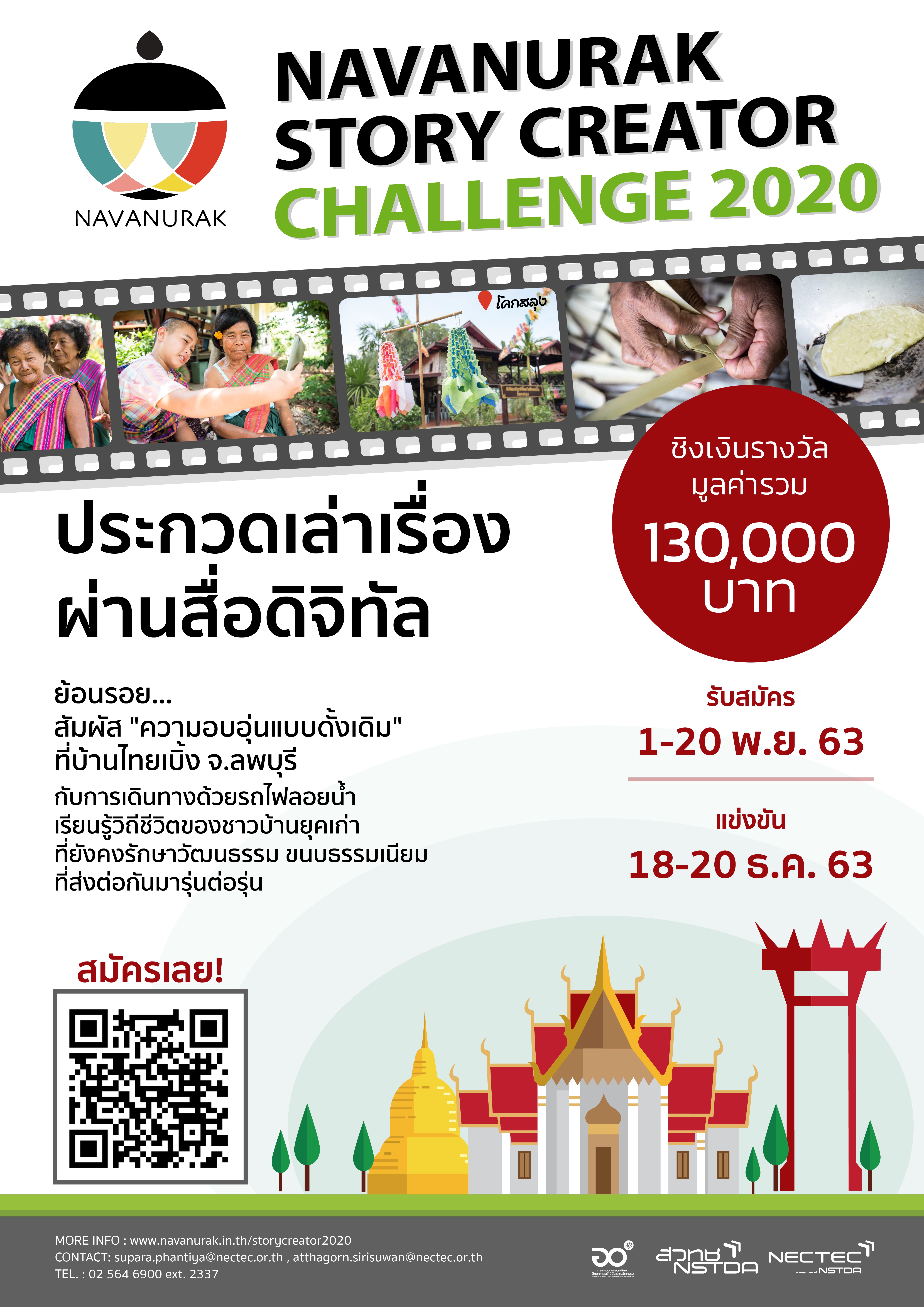 ประกาศผลทีมที่ผ่านการคัดเลือก ที่เว็บไซต์ www.navanurak.in.th/storycreator2020
