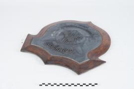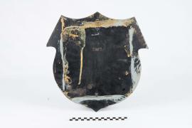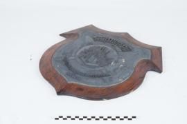 เป็นโล่ที่ราษฎรจังหวัดสุราษฎร์ธานีมอบให้เป็นที่ระลึกแก่ ร.ล.สุราษฎร์ธานี เมื่อ พ.ศ.๒๔๘๑