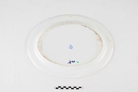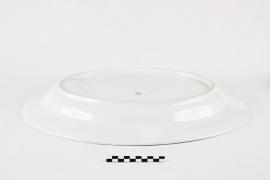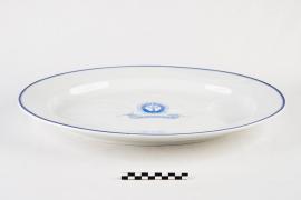 เป็นเครื่องใช้ในเรือพระที่นั่งมหาจักรี กลางจานประทับตรามหาจักรี ใช้สำหรับใส่อาหาร ผลิตที่ประเทศอังกฤษ