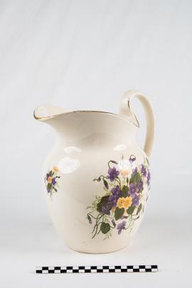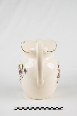 เป็นเครื่องใช้ในเรือพระที่นั่งมหาจักรี ผลิตพร้อมอ่างล้างหน้า ที่ใส่แปรงสีฟัน กระปุกแป้ง ที่ใส่สบู่ ใช้เทคนิคเคลือบเขียนลายสีม่วง