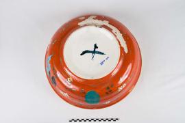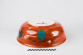 เป็นเครื่องใช้ในเรือพระที่นั่งมหาจักรี ผลิตพร้อมเหยือกน้ำ ที่ใส่แปรงสีฟัน กระปุกแป้ง ที่ใส่สบู่ ใช้เทคนิคเคลือบสีแดงเขียนลาย