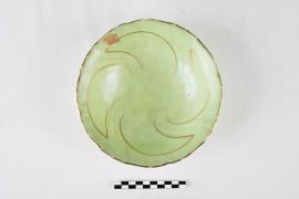 เป็นเครื่องใช้ในเรือพระที่นั่งมหาจักรี ผลิตพร้อมชุดพระบังคน เหยือก ที่ใส่สบู่และที่ใส่แปรงสีฟัน ใข้เทคนิคสีเขียวเขียนสีทอง