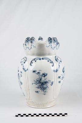เป็นเครื่องใช้ในเรือพระที่นั่งมหาจักรี ผลิตพร้อมอ่างล้างหน้า ที่ใส่แปรงสีฟัน กระปุกแป้ง ที่ใส่สบู่ ใช้เทคนิคเคลือบเขียนลายครามรูปดอกโบตั๋น