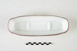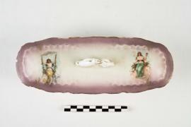 เป็นเครื่องใช้ในเรือพระที่นั่งมหาจักรี ผลิตพร้อมชุดสีม่วงประกอบด้วย อ่างล้างหน้า เหยือก และโถพระบังคน ใช้เทคนิคเขียนลายสาวน้อย แบบยุโรป