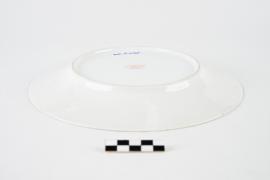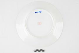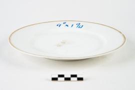 เครื่องใช้บนเรือพระที่นั่งมหาจักรี ใช้สำหรับอาหารคาว เดิมมีรอยพิมพ์ตรามหาจักรีกลางจาน ผลิตที่ปารีส ประเทศฝรั่งเศส