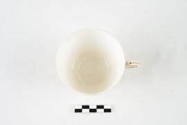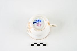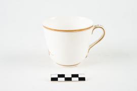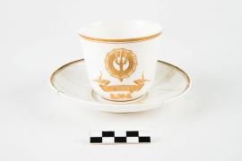 เป็นเครื่องใช้ในเรือพระที่นั่งมหาจักรี อยู่ในชุดน้ำชา ตัวถ้วยพิมพ์ตรามหาจักรี