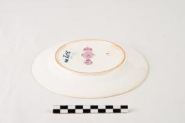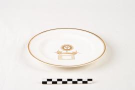 เป็นเครื่องใช้ในเรือพระที่นั่งมหาจักรี จานสำหรับขนมปัง กลางจานพิมพ์ตรามหาจักรี ผลิตโดยห้างแบดแมนนำเข้าจากประเทศอังกฤษ