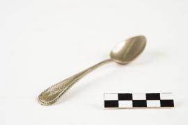 เครื่องใช้ส่วนพระองค์ของสมเด็จพระเจ้าบรมวงศ์เธอ เจ้าฟ้าบริพัตรสุขุมพันธ์ กรมพระนครสวรรค์วรพินิต ปลายด้ามสลักตราราชสกุลบริพัตร ใช้สำหรับชุดชาหรือกาแฟ