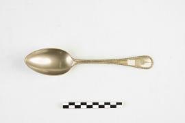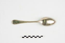 เครื่องใช้ส่วนพระองค์ของสมเด็จพระเจ้าบรมวงศ์เธอ เจ้าฟ้าบริพัตรสุขุมพันธ์ กรมพระนครสวรรค์วรพินิต ปลายช้อนสลักตราประจำราชสกุลบริพัตร ใช้สำหรับอาหารคาว