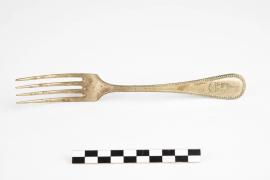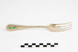 ส้อมโลหะ ประทับตราราชสกุลบริพัตร ใช้สำหรับอาหารคาว