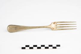 ส้อมโลหะ ประทับตราราชสกุลบริพัตร ใช้สำหรับอาหารคาว