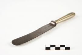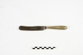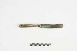เครื่องใช้ส่วนพระองค์ของสมเด็จพระเจ้าบรมวงศ์เธอ เจ้าฟ้าบริพัตรสุขุมพันธ์ กรมพระนครสวรรค์วรพินิต ปลายด้ามสลักตราราชสกุลบริพัตร ใช้สำหรับอาหารหวาน
