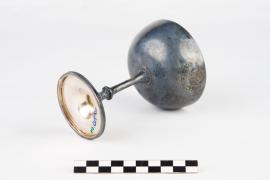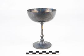 แก้วโลหะประทับตราจปร. เป็นเครื่องใช้ในเรือพระที่นั่งเวสาตรี ใช้สำหรับใส่แชมเปญ