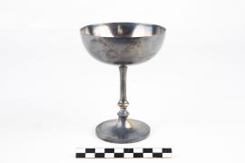 แก้วโลหะ ประทับตรามหาจักรี เป็นเครื่องใช้ในเรือพระที่นั่งมหาจักรี