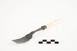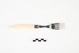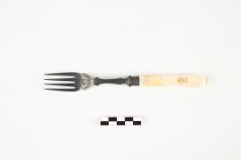เป็นเครื่องใช้ในเรือพระที่นั่งมหาจักรี ตัวส้มสลักลาย ด้ามทำจากงาช้าง ประทับตรามหาจักรี ใช้สำหรับรับประทานปลา