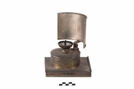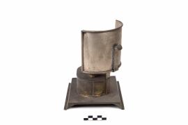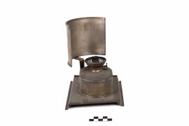 ตะเกียงน้ำมันก๊าดแบบแขวนผนัง มีแผ่นโลหะเพื่อช่วยสะท้อนแสงให้สว่าง