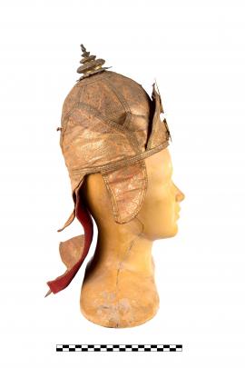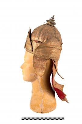 หมวกทรงประพาสยอดเกี้ยว เครื่องแบบกระบวนเรือพยุหยาตราทางชลมารค หน้าหมวกมีสัญลักษณ์กองทัพเรือ ตำแหน่งนายเรือพระที่นั่ง