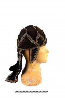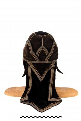 หมวกทรงประพาสยอดเกี้ยว (ชำรุด) สักหลาดสีน้ำตาล เครื่องแต่งกายในกระบวนเรือพยุหยาตราทางชลมารค