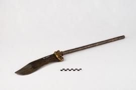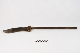 มีดตอกด้ามสลักลวดลาย ทำจากทองเหลือง ใช้จักตอกหรือเหลาหวาย