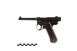 Japanese Model ๑๔ (๑๙๒๕) ขนาด ๘ ม.ม. AUTOMATIC PISTOL รับมาพร้อมกับ ร.ล.ธนบุรีและ ร.ล.ศรีอยุธยา เมื่อปี พ.ศ. ๒๔๘๑