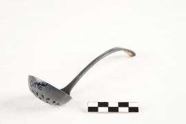 เป็นเครื่องใช้ในเรือพระที่นั่งเวสาตรี ฉลุลายใช้สำหรับตักผักดอง ปลายด้ามสลักตราเวสาตรี