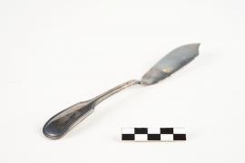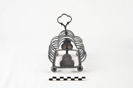 ที่ใส่ขนมปังขึ้นโต๊ะเสวย ทำจากโลหะเงิน มีตรามหาจักรีประทับเพื่อแสดงว่าเป็นเครื่องใช้ในเรือพระที่นั่งมหาจักรี