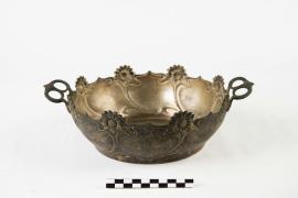 เป็นเครื่องใช้ในเรือพระที่นั่งมหาจักรี ทำจากทองเหลือง สลักลายจีน