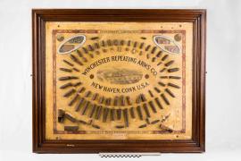 แผงตัวอย่างลูกปืน จำนวน ๘๔ ชนิด โดย WINCHESTER REPEATING ARMS CO. ประเทศสหรัฐอเมริกา