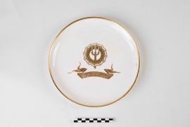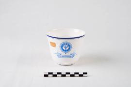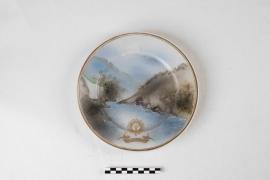 เครื่องใช้ในเรือพระที่นั่งมหาจักรี ผลิตในประเทศอังกฤษ จุดเด่นของวัตถุคือ มีภาพเขียนสีทิวทัศน์