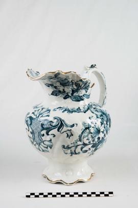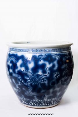 เป็นเครื่องใช้ในเรือพระที่นั่งมหาจักรี ผลิตพร้อมอ่างล้างหน้า ที่ใส่แปรงสีฟัน กระปุกแป้ง ที่ใส่สบู่ ใช้เทคนิคเคลือบเขียนลายคราม