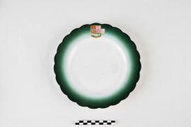 เครื่องใช้ส่วนพระองค์ของสมเด็จพระเจ้าบรมวงศ์เธอ เจ้าฟ้าบริพัตรสุขุมพันธ์ กรมพระนครสวรรค์วรพินิตร ขอบจานประทับตราราชสกุลบริพัตร ใช้สำหรับอาหารหวาน
