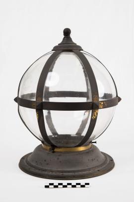 โคมไฟทรงกลมทำจากแก้วและโลหะ ใช้ครอบไฟในเรือ