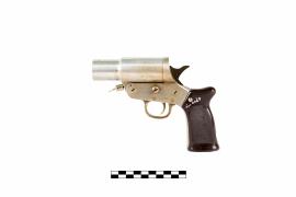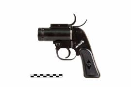 US SIGNAL PISTOL ขนาด ๔๐ มม. ใช้สำหรับยิงพลุ ผลิตจากประเทศสหรัฐอเมริกา ที่มาจากเครื่องบินอเมริกาที่ถูกยิงตกในประเทศไทย