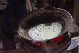 ขนมเบื้องโบราณ หนึ่งในอาหารทานเล่นยอดนิยมของชาวไทยเบิ้งบ้านโคกสลุงที่อยู่คู่กันมาอย่างยาวนาน ในอดีตขนมเบื้องจะใช้ข้าวสารมาบดในเครื่องโม่หิน เมื่อบดได้ที่แล้วจึงนำไปผสมกับน้ำใบเตย มะพร้าวอ่อน น้ำตาลและเกลือ เพื่อเพิ่มรสชาติให้กับขนม จากนั้นนำลงบนกระทะ
