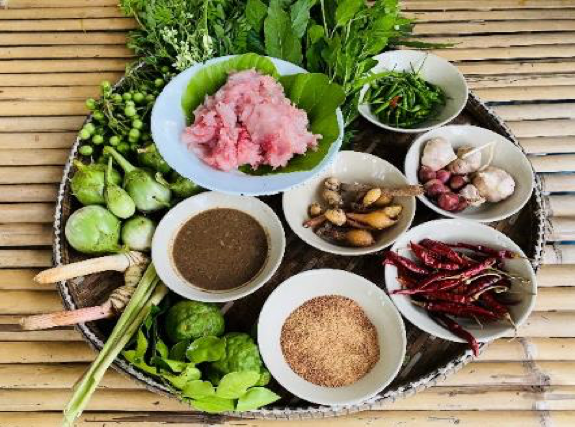 แกงป่าปลากราย เมนูเด็ด เผ็ดร้อน เครื่องแกงประกอบไปด้วย ข่า ตะไคร้ กระชาย ใบมะกรูด ผิวมะกรูด กระเทียม หอมแดง พริกแห้ง และเพิ่มความร้อนแรงด้วยกำจัด โขลกผสมจนได้เครื่องแกงเนื้อเนียนกลิ่นหอม จากนั้นนำหม้อตั้งไฟใส่น้ำให้พอดี พอน้ำเดือดได้ที่ปั้นเนื้อปลากรายที่ขูดแยกก้างเป็นก้อนพอคำใส่ลงไป เมื่อเนื้อปลาสุกได้ที่ ตักน้ำร้อนจากหม้อใส่ครกเพื่อละลายเครื่องแกงเทผสมในหม้อ ทิ้งเวลาสักครู่สังเกตเนื้อปลากรายเริ่มพองฟูเติมผักนานาชนิดที่เตรียมไว้ อาทิ มะเขือเปราะ มะเขือพวง ใบพริก ใบและดอกมะรุม รอสักครู่พอน้ำแกงเริ่มเดือดพล่าน ปรุงเค็มด้วยน้ำปลาร้า ใส่ใบกะเพรา หรือใบยี่หร่า และลูกโดด (พริกขี้หนูสวน) เป็นขั้นตอนสุดท้าย หลังจากนั้นตักใส่ถ้วย จัดให้สวยงามพร้อมรับประทาน