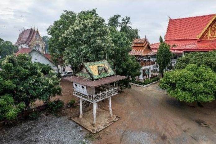 ภายในเจาะเป็นช่องซี่ลูกกรงให้แสงผ่านลอดได้ และที่โคนเสาทั งสี่มุมของอาคาร ถูกประดับด้วยปูนปั้นกลีบบัวซ้อน