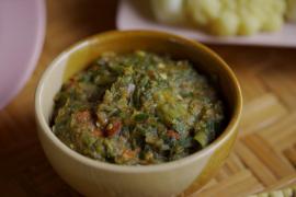 แกงหน่อไม้ อาหารที่เป็นเอกลักษณ์ของชุมชน เมื่อมีแขกมาเยี่ยมก็มักจะทำเมนูอาหารนี้เสมอ เนื่องจากเป็นวัตถุดิบที่สามารถหาได้ตามท้องถิ่น