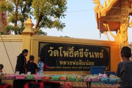 วัดโพธิ์ศรีจันทร์ ก่อตั้งเมื่อ พ.ศ. 2349โดยมีพระอาจารย์วงศ์ เป็นผู้ชักชวนชาวบ้านสร้างวัดขึ้น ทางวัดแจ้งในแบบกรอกประวัติวัดว่า ได้รับพระราชทานวิสุงคามสีมาเมื่อวันที่ 10 เมษายน พ.ศ. 2560 การบริหารและการปกครอง มีเจ้าอาวาสเท่าทราบนาม คือ รูปที่ 1 พระวงศ์ รูปที่ 2 พระธง รูปที่ 3 พระคาย รูปที่ 4 พระเต็ม รูปที่ 5 พระอ่อน รูปที่ 6 พระบุญไตรย์ รูปที่ 7 พระทอมสัน รูปที่ 8 พระทองใส รูปที่ 9 พระธาตุ ตั้งแต่ พ.ศ. 2529 เป็นต้นมา การศึกษามีโรงเรียนพระปริยัติธรรม แผนกธรรม เปิดสอน พ.ศ. 2489 มีกิจกรรมที่โดดเด่น คือ ในทุกวันอังคารคนในชุมชนจะแต่งกายแบบภูไทมาตักบาตรข้าวเหนียว