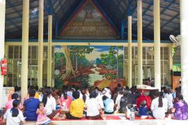 “ฮีตสิบสอง” คือ ประเพณีคนภาคอีสานปฏิบัติสืบต่อกันมาในโอกาสต่างๆ ทั้งสิบสองเดือนของแต่ละปี เป็นการผสมผสานพิธีกรรมที่เกี่ยวกับเรื่องผีและพิธีกรรมทางการเกษตร เข้ากับพิธีกรรมทางพุทธศาสนา ซึ่งทุกๆ ประเพณีเกี่ยวเนื่องกับชีวิตความเป็นอยู่ของชุมชน เช่น เพื่อเป็นสิริมงคลกับครอบครัว ลูกหลาน รักใคร่สามัคคีปรองดองกัน ไม่ทะเลาะเบาะแว้งกัน ไม่มีเหตุเภทภัยอันตรายใดๆ เกิดขึ้นในชุมชน ให้ขจัดปัดเป่าออกไป เป็นต้น โดยที่ฮีตสิบสองจะอ้างอิงตามปฏิทินจันทรคติไทย ดังนี้ 1. เดือนอ้าย จะมีการทำ “บุญเข้ากรรม” โดยนิมนต์พระสงฆ์มาเข้าปริวาสกรรมหรือเข้ากรรม เพื่อฝึกสำนึกความผิดหรือความบกพร่องของตนและ มุ่งประพฤติปฏิบัติให้ถูกต้องตามพระธรรมวินัยต่อไป ในด้านฆราวาสจำทำพิธีเลี้ยงผีแถนผีต่างๆ (ผีบรรพบุรุษ) โดยชาวบ้านตักบาตรร่วมกันที่ ศาลาประชาคม กลางหมู่บ้านทั้ง 4 หมู่ 2. เดือนยี่ จะมีการทำ “บุญคูณข้าว” หรือ “บุญคูณลาน” โดยนิมนต์พระสงฆ์สวดมนต์เย็นและฉันภัตตาหารเช้าเพื่อเป็นสิริมงคลแก่ข้าวเปลือกเมื่อพระฉัน อาหารเช้าเสร็จก็ทำพิธีสู่ขวัญข้าวต่อไป รวมถึงพิธีบวงสรวงองค์พระศิวะ สิ่งศักดิ์สิทธิ์ใน “ปราสาทเมืองต่ำ” และ งานเดอะมิวสิคัล แสง สี เสียง อันยิ่งใหญ่ตระการตา ตามรอยอารยธรรมขอมโบราณ 3. เดือนสาม จะมีการทำ “บุญข้าวจี่” และ “บุญมาฆบูชา” เริ่มพิธีทำบุญข้าวจี่ในตอนเข้าโดยใช้ข้าวเหนียวปั้นหุ้มน้ำอ้อยนำไปย่างไฟหรือจี่พอเกรียมแล้วชุบ ด้วยไข่นำไปย่างไฟจนสุกแล้วใส่ภาชนะเพื่อนำไปถวายพระสงฆ์พร้อมกับอาหารอื่น ๆ ข้าวจี่ที่เหลือจากพระฉันแล้ว ชาวบ้านจะแบ่งกันรับประทานถือว่าผู้รับประทาน จะเป็นมงคลแก่ตัวเอง 4. เดือนสี่ จะมีการทำ “บุญเผวส” “บุญพระเวส’ หรือ “บุญมหาชาติ” มีการฟังเทศน์มหาชาติ ถือกันว่าต้องฟังให้จบทุกกัณฑ์ในวันเดียวจึงจะได้กุศล งานบุญนี้มีผู้นำของมาถวายพระเรียกว่า “กันฑ์หลอน” 5. เดือนห้า จะมีการทำ “บุญสงกรานต์” โดยมีการแห่พระ แห่ตาปู่ รอบหมู่บ้านเพื่อให้ชาวบ้านทำการสรงน้ำพระพุทธรูปและพระสงฆ์ ซึ่งชาวบ้านจะไปเก็บดอกไม้มาบูชาพระ 6. เดือนหก จะมีการทำ “บุญบั้งไฟ” สำหรับบุญบั้งไฟก็เป็นพิธีเพื่อ ขอฝนจากเทวดา (แถน) และ “บุญวิสาขบูชา” จะมีการฟังเทศน์ เวียนเทียน 7. เดือนเจ็ด จะมีการทำ “บุญเบิกบ้าน” เพื่อบูชาสิ่งศักดิ์สิทธิ์ในชุมชน และมีกิจกรรมดำนา 8. เดือนแปด จะมีการทำ “บุญเข้าพรรษา” มีการทำบุญตักบาตรพระสงฆ์ ถวายภัตตาหาร แด่พระสงฆ์ ทำต้นเทียนหรือนำขี้ผึ้งมาหล่อเป็นเทียนพรรษา เพื่อถวายเป็นพุทธบูชา 9. เดือนเ