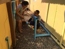 ธนาคารน้ำใต้ดิน คือ การนำน้ำลงไปเก็บในชั้นใต้ดิน ธนาคารน้ำใต้ดินมี 2 ประเภท คือ ธนาคารน้ำใต้ดิน ระบบปิด และธนาคารน้ำใต้ดินระบบเปิด ธนาคารน้ำใต้ดินระบบปิด เป็นการขุดบ่อให้ลึกถึงชั้นหินอุ้มน้ำ จากนั้นใส่ยางรถยนต์เพื่อป้องกันขอบบ่อพังทลาย ใส่วัสดุที่หาได้ในพื้นที่ เช่น ขวดน้ำ จะใส่ 1 ใน 3 ส่วน, ท่อนไม้ หรือเศษปูนให้เต็มช่องว่างด้านนอกยางรถยนต์ นำท่อ PVC มาวางตรงกลางบ่อเพื่อเป็นช่องระบายอากาศ นำวัสดุชนิดเดียวกับที่ใส่ช่องว่างด้านนอกมาเติมใส่ช่องว่างด้านในให้เต็ม คลุมด้วยผ้าไนล่อน แล้วทับด้วยก้อนหิน และตามด้วยหินละเอียดอีกที เพื่อเป็นตัวกรองให้เศษดิน หรือขยะไม่ให้เข้าไปอุดตันในบ่อ เมื่อฝนตกลงมาน้ำจะไหลผ่านธนาคารน้ำใต้ดิน สู่ชั้นใต้ดินโดยตรง ธนาคารน้ำใต้ดินระบบเปิด เป็นการขุดบ่อขนาดใหญ่ แล้วเจาะพื้นบ่อเป็นหลุม 3 หลุมให้ลึกถึงชั้นหินอุ้มน้ำ เพื่อให้น้ำไหลลงชั้นหินอุ้มน้ำได้ดี และมีช่องสำหรับถ่ายเทอากาศจากโพรงใต้ดินเมื่อถูกน้ำเข้าไปแทนที่ โดยน้ำที่นำมาเก็บนั้นมาจากหลายแหล่งด้วยกัน เช่น น้ำฝน หรือน้ำจากการทำธนาคารน้ำใต้ดิน ระบบปิด ซึ่งเมื่อน้ำถูกเติมลงชั้นใต้หินอุ้มน้ำปริมาณมากพอ น้ำจะเอ่อล้นมาที่บ่อโดยอัตโนมัติ ประโยชน์ของธนาคารน้ำใต้ดิน 1. ช่วยแก้ปัญหาน้ำท่วมได้ 2. ช่วยแก้ปัญหาภัยแล้ง 3. แก้ปัญหาน้ำเค็ม 4. แก้ปัญหาน้ำสกปรก