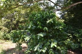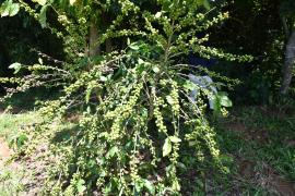 德天咖啡园是素松本村众多咖啡种植园中的一个,主要种植皇家项目推行的小果咖啡(Arabica Coffee)。因气候事宜,咖啡园中除了种植咖啡,还会种植其他作物,这里叫做混合种植园,如黑糯米稻田里也会种上榴莲、草药等。从咖啡树上掉下来的咖啡种子,会自己生根发芽长成小咖啡树,因此不需要特意去种咖啡。咖啡园靠近辉家明水库(Huai Khamin),常有凉风吹来,所以气候很凉爽。到了收获的季节,咖啡园主会来收咖啡豆;或者是咖啡树开花的时候,他们会来采摘部分咖啡花用于制作咖啡花茶,这也算是当地的一种特产。