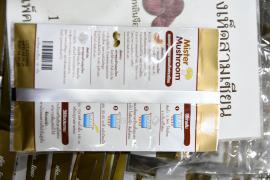 ผงเห็ดสามเซียน ผลิตภัณฑ์จากเห็ดสามชนิดคือ เห็ดหลินจือ เห็ดหัวลิง และเห็ดหอม ผลิตภัณฑ์นำเสนอในรูปแบบผงชง มีฤทธิ์ต้านการเกิดมะเร็ง กระตุ้นภูมิคุ้มกัน ลดการอักเสบ ลดระดับคลอเลสเตอรอล บำรุงไต หลอดเลือดหัวใจ ลดอาการเครียด รักษาอาการหลอดลมอักเสบและต้านไวรัสอีกด้วย สรรพคุณครบครันขนาดนี้ มีวิธีการชงคือ ต้นน้ำปริมาณ 3 ลิตรให้เดือด เติมผงเห็ดสามเซียนจำนวน 2 ซอง (ไม่ต้องฉีก) ทิ้งไว้ 30-40 นาที เพื่อให้สารออกฤทธิ์ออกมากับน้ำ ปิดแก๊สทิ้งไว้ให้อุ่น จากนั้นปรุงรสด้วยน้ำผึ้งแท้ จากนั้นก็พร้อมเสิร์ฟ จะรับประทานแบบร้อนหรือเย็นแล้วแต่ชอบ มีประโยชน์อย่างแน่นอน ผลิตภัณฑ์นี้วางจำหน่ายที่ วังน้ำเขียวฟาร์ม หมู่บ้านสุขสมบูรณ์