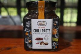 น้ำพริกตาแดงเห็ดหอมของวังน้ำเขียวฟาร์ม เป็นผลิตภัณฑ์มออแกนิคและเป็นสินค้าเกรดพรีเมียม โดยมีส่วนประกอบหลัก คือ เห็ดหอมสด หอมแดง กระเทียม พริกแห้ง น้ำตาลปี๊บ มะขามเปียก และเกลือ สำหรับสูตรเผ็ดมากจะมีส่วนผสมของพริกอยู่ที่ 7% และเผ็ดน้อย 5% ในส่วนของสูตรเจส่วนผสม ประกอบด้วย โปรตีนเกษตร ถั่วลิสง กะปิเจ พริกแห้ง มะขามเปียก เกลือและน้ำตาลมะพร้าว น้ำพริก 1 กระปุก ขนาด 200 g ราคา 70 บาท เมนูอร่อยแนะนำจากน้ำพริกตาแดง อาทิเช่น ผักต้ม ปลาทอด หรือไข่เจียวจิ้มกับน้ำพริก หรือลองจับมาทำข้าวผัดน้ำพริกตาแดงกุ้งสด ข้าวผัดน้ำพริกตาแดงปลาสลิด สะตอผัดน้ำพริกตาแดงกุ้งสด หรือน้ำพริกตาแดงผัดหมู สามารถนำมาสร้างสรรค์ได้หลากหลายเมนูเลยทีเดียว นอกจากจะได้ความอร่อยยังได้ประโยชน์จากเห็ดหอม และสมุนไพรที่เป็นส่วนผสมในน้ำพริกอีกด้วย
