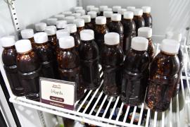 เมื่อได้มีโอกาสแวะที่วังน้ำเขียวฟาร์มและเดินเลือกชมผลิตภัณฑ์แปรรูปจากเห็ดที่จัดวางไว้ภายในอาคารร้านค้าที่จำหน่ายของฝากของที่ระลึกแล้ว ภายในบริเวณดังกล่าวจะมีผลิตภัณฑ์อาหารที่ได้จัดวางไว้ในส่วนของตู้แช่เย็นซึ่งเราจะพบกับลูกชิ้นเห็ดหอม หมูยอผสมเห็ดหอม สามารถนำไปทำเป็นเมนูทานเล่นหรือจะปรุงเป็นอาหารในมื้อหลัก นอกจากนี้ยังมีน้ำจิ้มลูกชิ้นไว้ให้ทานเป็นของคู่กัน แต่ถ้าไม่อยากรอจนถึงบ้าน ทางวังน้ำเขียวฟาร์มมีคาเฟ่บรรยากาศอบอุ่นน่ารักที่บริเวณด้านหน้าก่อนทางเข้าอาคารร้านค้าไว้ต้อนรับนักท่องเที่ยวพร้อมกับมีอาหารว่างที่เป็นผลิตภัณฑ์แปรรูปจากเห็ด เช่น ลูกชิ้นเห็ดหอมทอด หมูยอทอดมีไว้ให้อร่อยโดยไม่ต้องรอกลับไปปรุงเอง