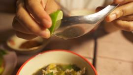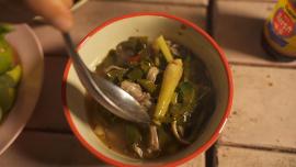 3. ใส่น้ำปลา น้ำปลาร้าเล็กน้อย ใส่พริกแห้งตำพอแตก