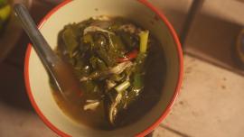 2. ใส่เนื้อไก่บ้านฉีก ต้มจนเดือด หากพี่ฟองก็ควรช้อนฟองออก