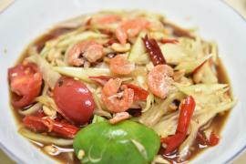 ถ้าเราเอ่ยถึงส้มตำ ก็จะนึกถึงคำว่า Papaya pok pok ในลาวจะเรียกว่าตำหมากหุ่ง ก็คือเป็นอาหารที่มีส่วนประกอบหลักคือ เส้นมะละกอดิบ ที่มาจากการสับหรือจากการขูด แล้วนำมาตำในครกพร้อมปรุงด้วยวัตถุดิบอื่น ๆ ได้แก่มะเขือเทศ มะเขือเปราะ พริกสดหรือพริกแห้ง ถั่วฝักยาว กระเทียม และปรุงด้วยน้ำตาลปี๊บ น้ำปลา มะนาว รสชาติจัดจ้านและได้คุณประโยชน์ ตอนนี้เมนูส้มตำมีหลากหลายมากขึ้น จากการหยิบจับนำสิ่งที่ชอบมาผสมกับส่วนประกอบหลัก ๆ ของส้มตำ แต่ถ้าได้มาที่จังหวัดนครราชสีมา หรือมีชื่อเรียกอีกชื่อว่า “โคราช” ก็จะได้พบกับเมนูส้มตำ คือ ตำโคราช เป็นส้มตำที่เป็นลูกผสมระหว่างตำไทยและตำลาว ก็จะมีส่วนผสมเพิ่มเข้ามา คือ ถั่วลิสง กุ้งแห้ง ที่มาจากตำไทย และตำโคราชก็จะมีส่วนผสมเป็นน้ำปลาร้าที่มาจากตำลาว เป็นต้น ถ้าจะพลิกแพลงสูตรหน่อยก็ผสมเส้นแครอทลงไปด้วย จากนั้นปรุงให้เข้ากันกับส่วนประกอบหลักของส้มตำด้วยครกกับสาก ผนวกกับฝีไม้ลายมือของนักตำแล้ว รสชาติเด็ดทีเดียว