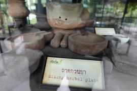 ถาดกวนยา แม้ว่าจะนำสมุนไพรไปบดด้วยเครื่องบดยาแล้วก็ตาม สมุนไพรที่จะนำไปใช้ในการทำยาเม็ดอาจไม่ละเอียดพอ จึงจำเป็นต้องนำมาบดอีกครั้ง นอกจากจะบดให้ละเอียดมากขึ้น ยังเป็นการผสมให้ตัวยาหลายชนิดเข้าเป็นเนื้อเดียวอีกด้วย มีลักษณะเป็นแอ่งตื้นและมีปากเพื่อเทยา ปัจจุบันมีเครื่องมือที่ทันสมัยสะดวกและรวดเร็วเข้ามาแทนที่ การใช้จึงไม่ค่อยมีให้เห็นแล้ว ซึ่งได้จัดแสดงที่ “ศาลายา” พิพิธภัณฑ์มรดกไทยทางด้านยาแผนโบราณ ภายในรวบรวม ในด้านประวัติศาสตร์ วิถีชีวิต ตำรับยา ตู้ใส่วางยา และสิ่งของที่ใช้ในการทำยาแพทย์แผนไทยและการแพทย์ทางเลือก ยาสามัญประจําบ้าน สมุนไพรหายาก ใกล้สูญพันธุ์ ที่มีคุณค่าต่อการศึกษาด้านการแพทย์แผนไทยและสมุนไพร เป็นแหล่งการศึกษา ค้นคว้า วิจัย และเผยแพร่ความรู้เกี่ยวกับวิถีชีวิตของคนท้องถิ่นที่เกี่ยวข้องกับสมุนไพร และการแพทย์ของท้องถิ่น ณ บริษัท วังน้ำเขียวฟาร์มอินเตอร์ จำกัด ซึ่งส่วนหนึ่งของความหลากหลายจากบ้านสุขสมบูรณ์