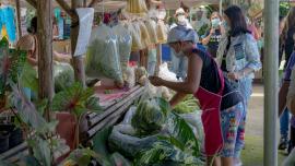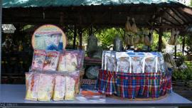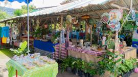 ตลาดนัดบ้านสุขสมบูรณ์เป็นตลาดที่ต้องนัดจริง ๆ ถึงจะได้เห็นของดีของหมู่บ้านสุขสมบูรณ์ที่ชาวบ้านนำมาออกร้านขาย ไม่ใช่ตลาดสดที่ตั้งแผงกันทุกเมื่อเชื่อวันแบบนั้น การออกร้านในตลาดแห่งนี้จะมีของนำมาวางแผงขายเต็มทุกแผงในช่วงมีเทศกาลหรือมีกิจกรรมสำคัญในชุมชน ชาวบ้านจะนำผลิตภัณฑ์เด่นในบ้านมาออกร้านขายในตลาดชุมชน เช่น กาแฟตื่นเต้น ผักสลัดออแกนิค เห็ดนานาชนิด ไม้ดอกไม้ประดับ หนังสติ๊ก ชาใบหม่อน หน่อไม้ดอง หน่อไม้ต้มผลไม้ตามฤดูกาลและสินค้าในชุมชนชนิดอื่น ๆ อีกมากมายในช่วงต้นเดือนธันวาคมลมหนาวพัดมาถึงหมู่บ้านแห่งนี้แล้ว ทางหมู่บ้านจัดว่าเป็นช่วงไฮซีซันเพราะจะมีนักท่องเที่ยวหลั่งไหลมา “ห่มหมอกฟอกปอดกอดภูเขา” อย่างเนืองแน่น เพื่อให้มีของขบเคี้ยวและอาหารบริการนักท่องเที่ยวแม่ ๆ กลุ่มแม่บ้านจะมาออกร้านทำเมนูเด็ดขายริมทางด้วยซึ่งเป็นเมนูที่แสดงความเป็นหมู่บ้านสุขสมบูรณ์มาก เพราะวัตถุดิบที่เลือกใช้คือเห็ดสามชนิดคือเห็ดเข็มทอง เห็ดนางฟ้า เห็ดออรินจิ เมนูที่ว่าคือ“เห็ดทอดสามสาว”เป็นเมนูที่จะได้รับประทานปีละครั้งจากหมู่บ้านนี้ในช่วงเวลานี้เท่านั้น และขอยืนยันว่าเมนูนี้อร่อยมาก เคี้ยวเพลิน เริ่มทานแล้วจะหยุดไม่ได้เลยทีเดียว
